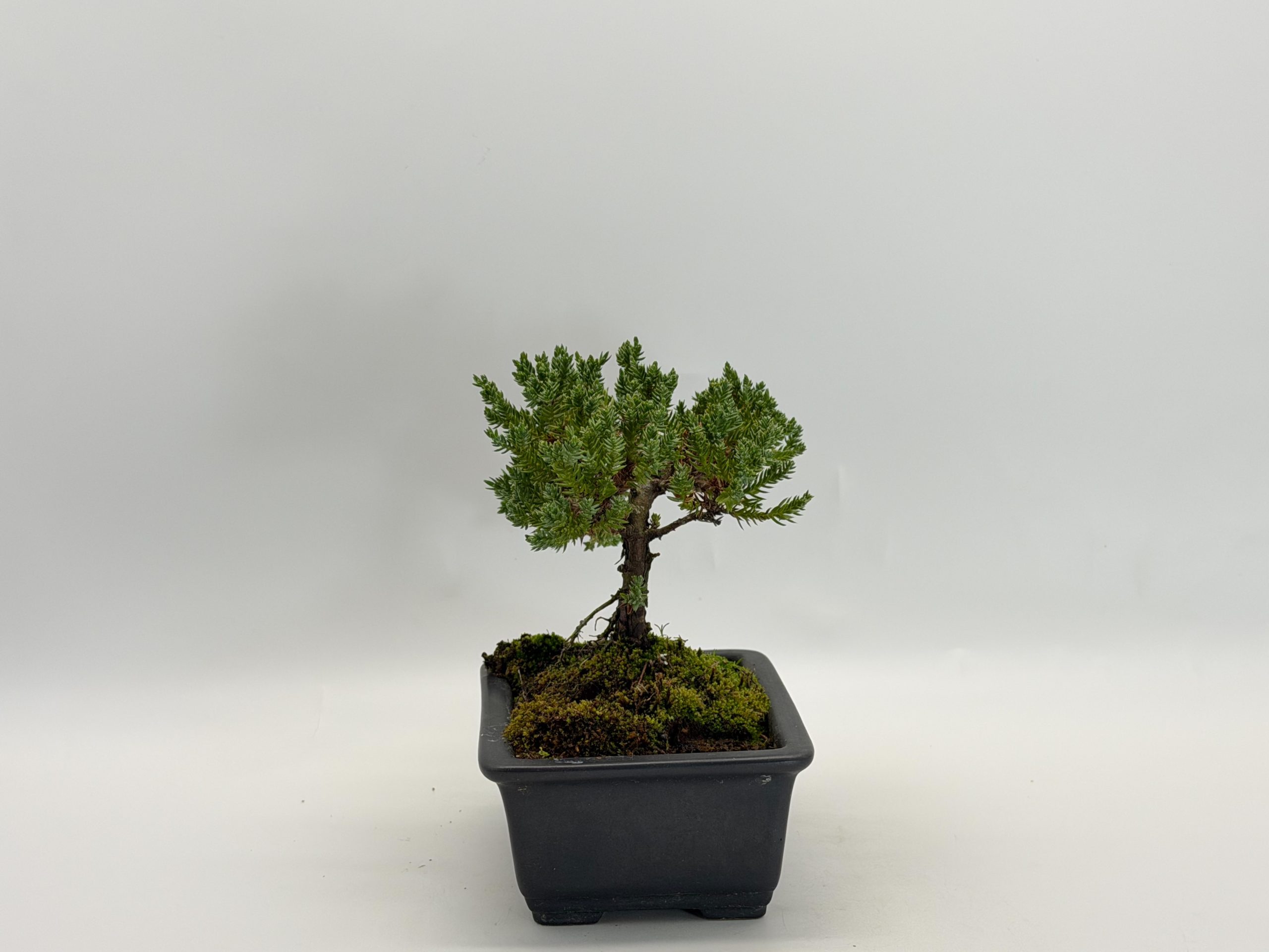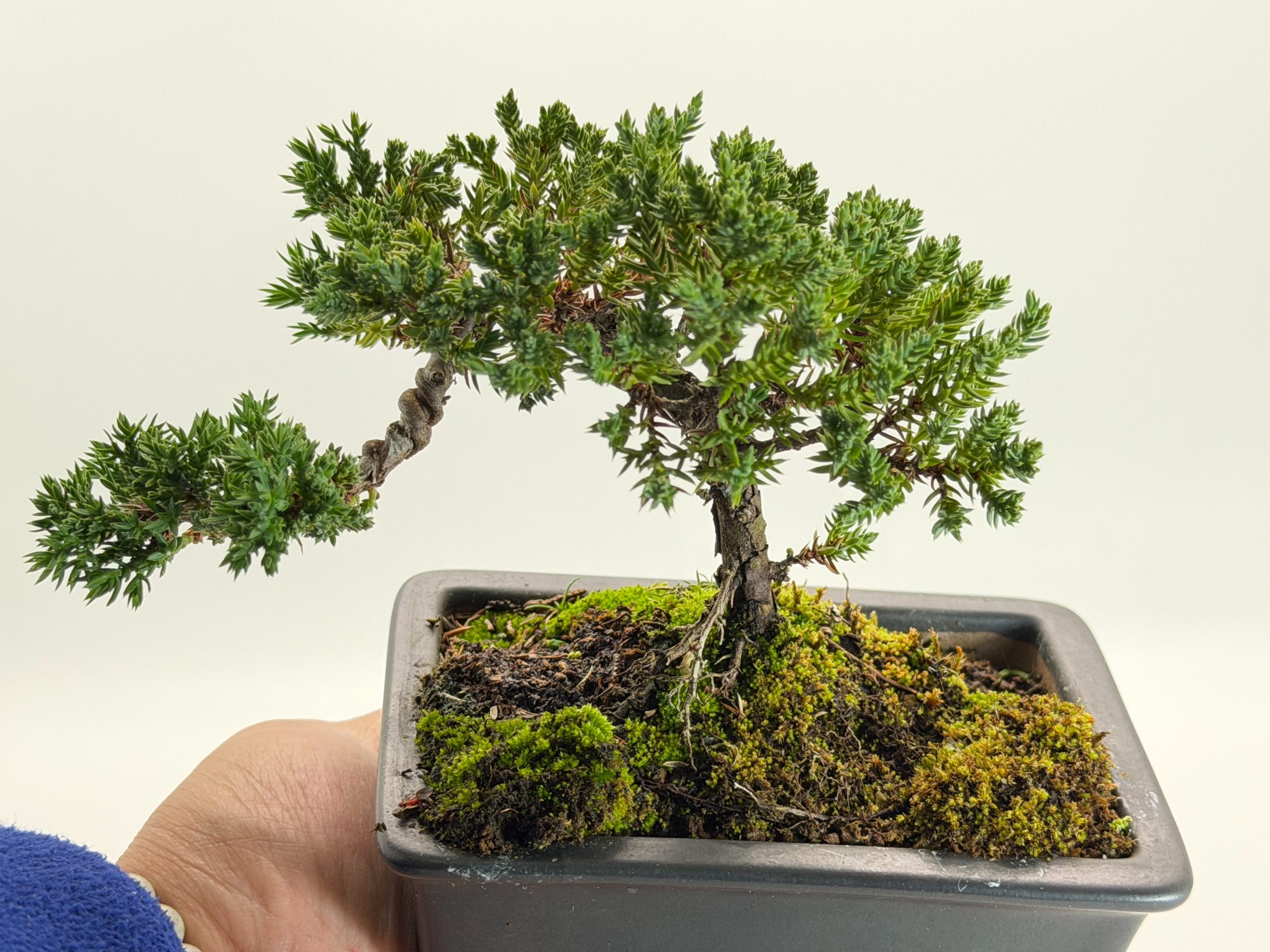 盆栽をしない方には聞き馴ない樹種、ソナレは日本が原産のヒノキの仲間の常緑低木樹です。海辺に自生し潮風に耐えるために木が地面に傾き生える樹形が侘水景の水辺の景色良く合います。