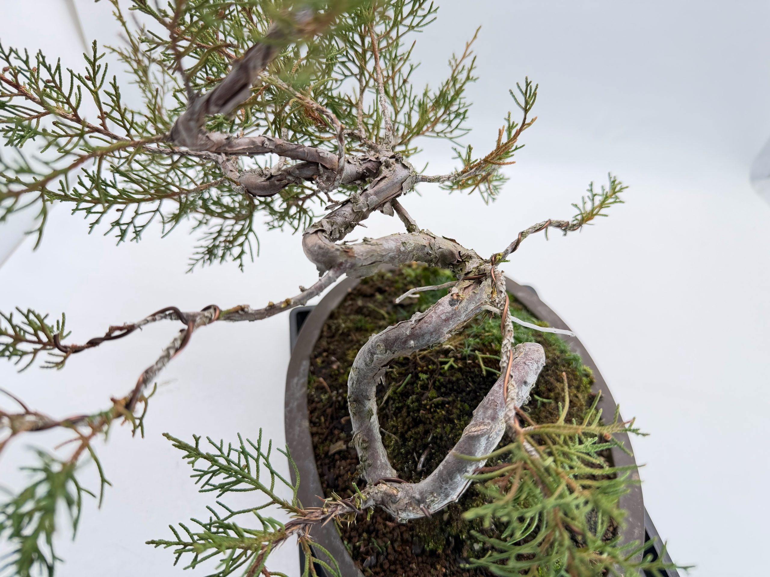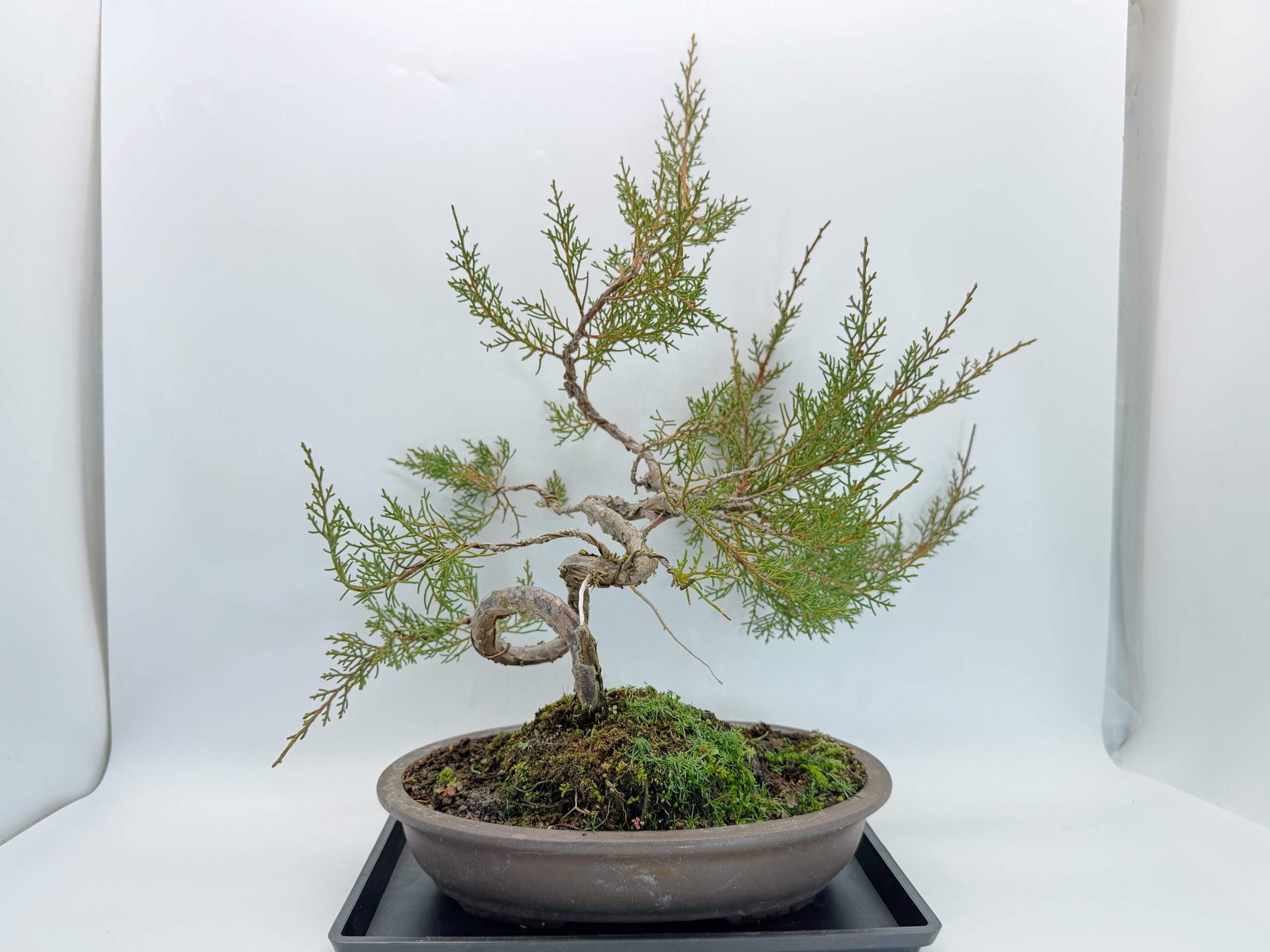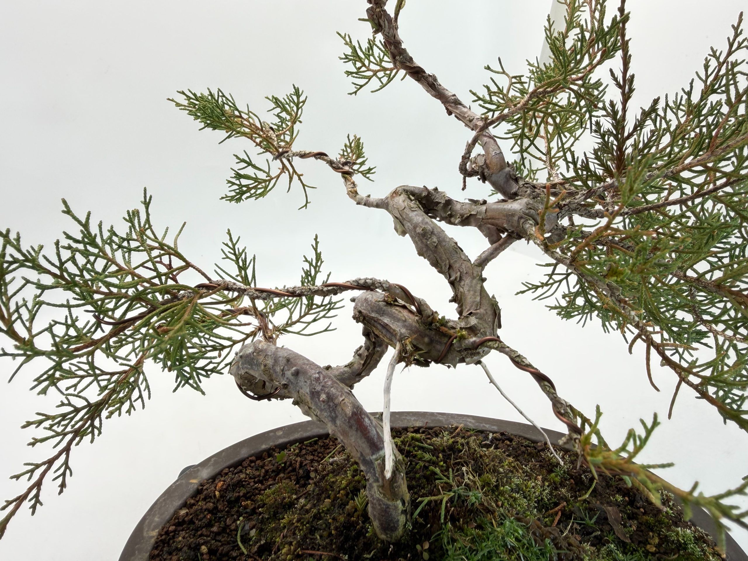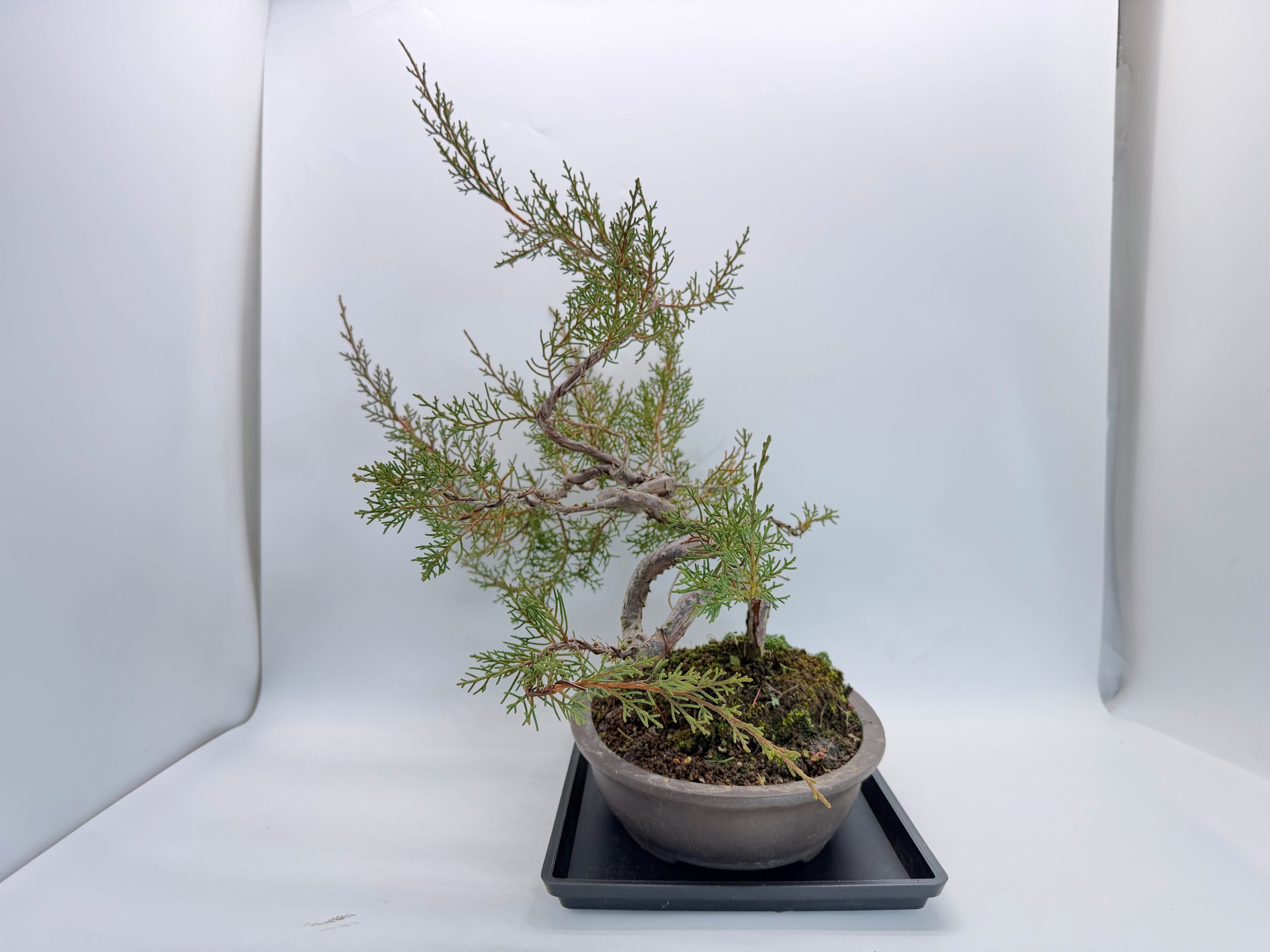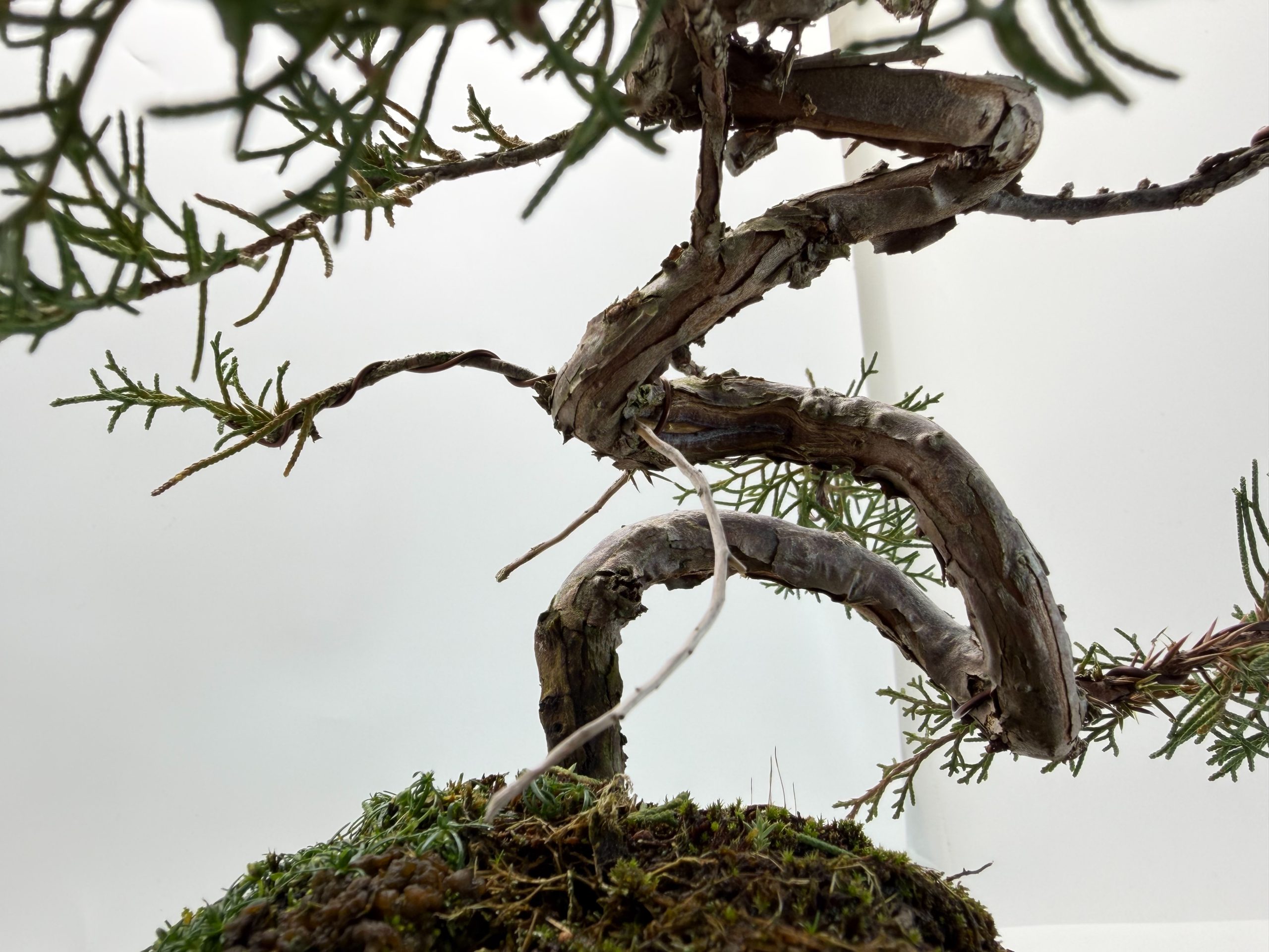 立ち上がりから複雑な曲がつき、枝先は走らせてある状態ですので、これから育て甲斐や手を加える魅力満載の真柏です。